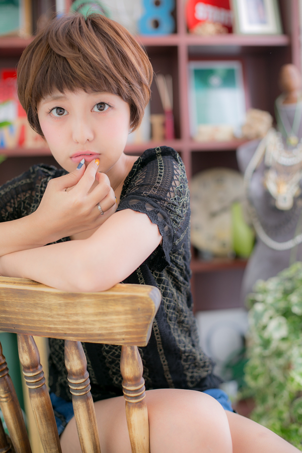顔周りの明るいトーンと眉上バングで、顔立ちをハッキリと綺麗に見せてくれます。さりげない束感の流れで、ラフな中にも女性らしさがキラリと光ります☆