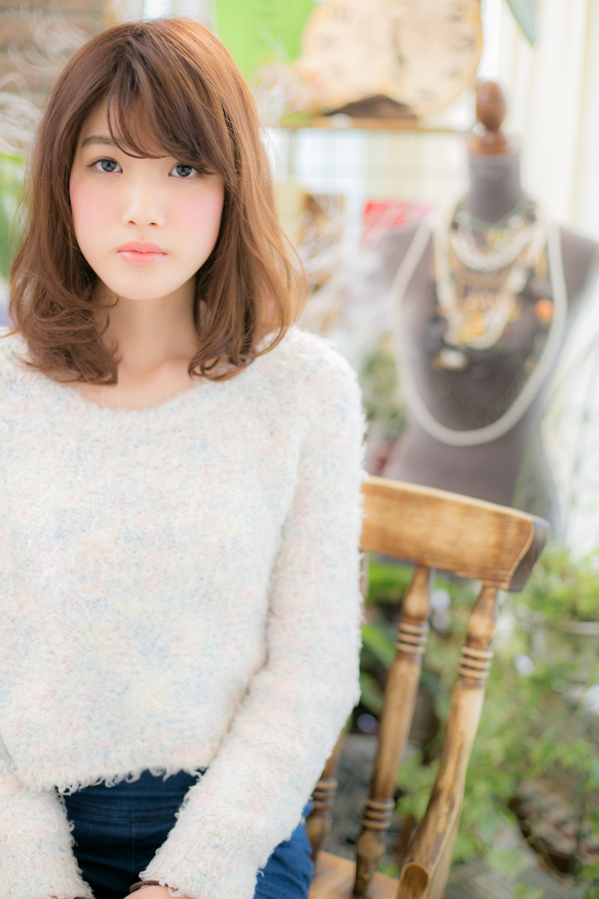 伸ばしかけの方にもオススメセミディスタイル。前髪のクセを活かして目力UPをイメージしてカールを☆全体にワンカールの積み重ねでスタイルのフォルムを作ります。