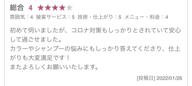 また、当店のコロナ対策にご安心いただけ、私共もほっと致しました。