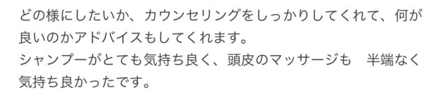 カウンセリングやシャンプーについてのお褒めの言葉を頂き、大変嬉しく思います!