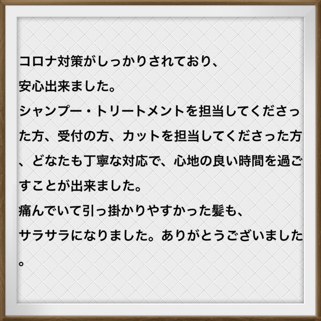 携わったスタッフへの嬉しいお言葉、ありがとうございます☆せっかくの美容室!!よりリラックスしながら心地よい空間をご提供する為に、対応力の練習や勉強もしております。