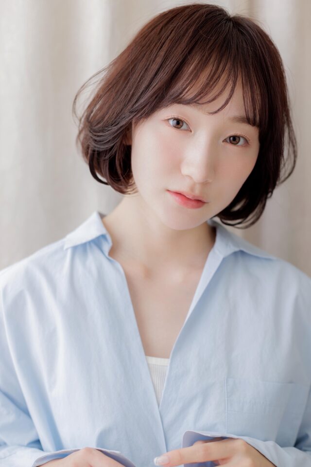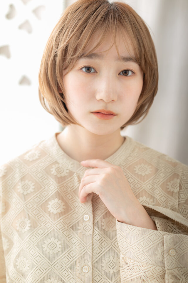 - ココアブラウン小顔美肌ストレート丸みミニボブ20代30代