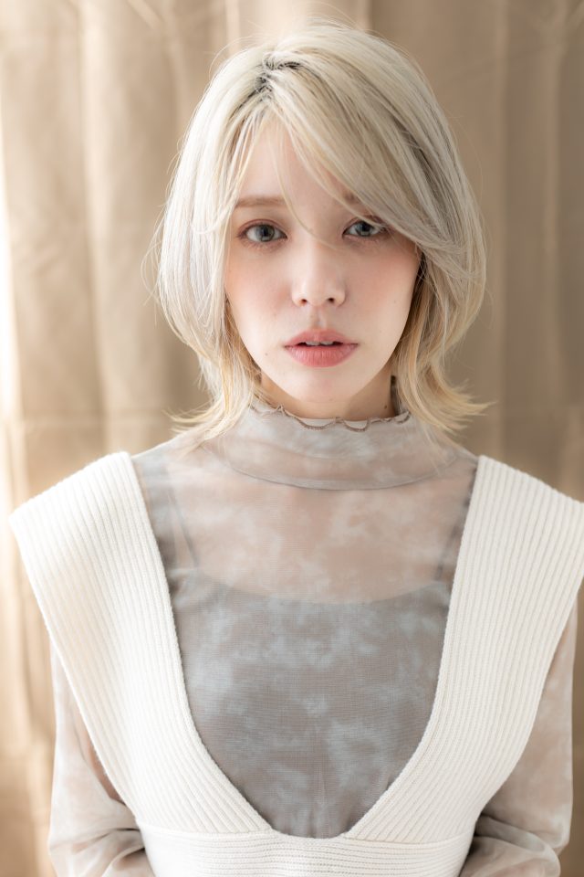 - 大人可愛いホワイトブロンド小顔ボブ20代30代