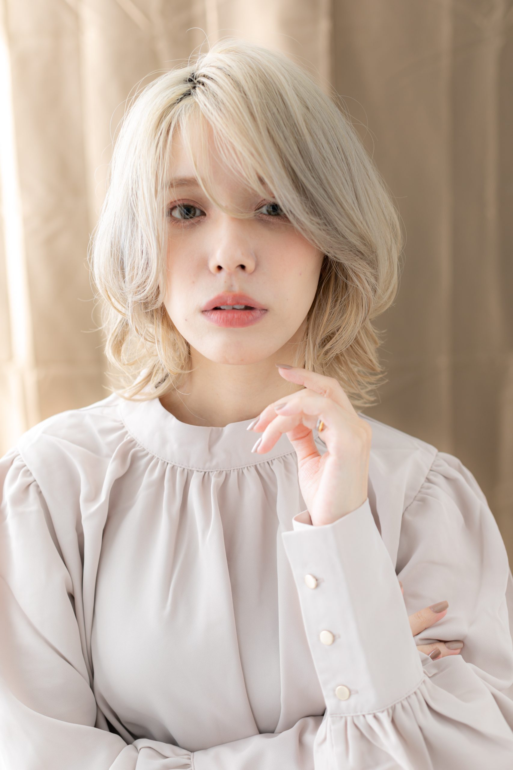 ウルフボブ/無造作/大人かわいい/大人耳掛け/小顔/ネオウルフ/大人ボブ/ボブディ/ロブ/セミディ/透明感/ツヤ感/外ハネ/ロブ/ベージュカラー/アッシュ/暗髪/パーマ