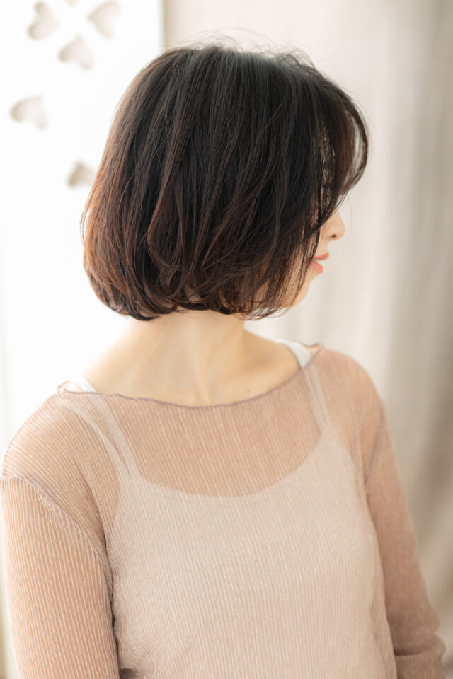 小顔カット。やりすぎない自然なエアリーな質感が、どこか余裕のある女性らしい可愛らしさを表現。ON.OFFどちらもいけて、カジュアルな中にもキチッと感のある万能ヘアをぜひ!