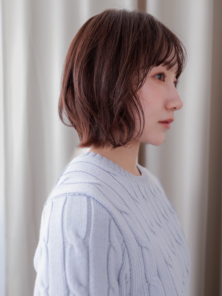 小顔カット。やりすぎない自然なエアリーな質感が、どこか余裕のある女性らしい可愛らしさを表現。ON.OFFどちらもいけて、カジュアルな中にもキチッと感のある万能ヘアをぜひ!