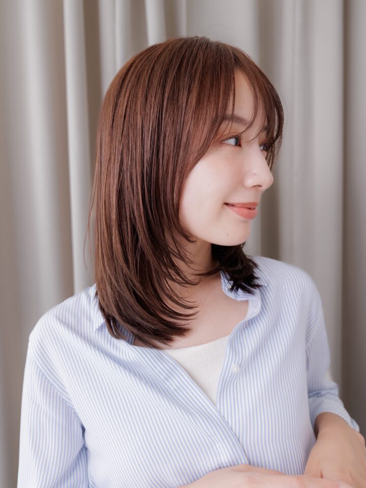 透けるような透明感のミルクティーグレージュ。こちらはカラー剤でダブルカラーをしています。ブリーチよりも傷まず、ワンカラーよりも圧倒的に透明感がでるので、現状の髪色が暗めの方、いつもオレンジになってしまう方はこちらがおススメです♪