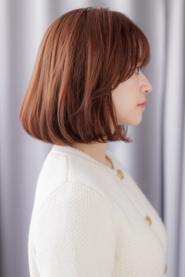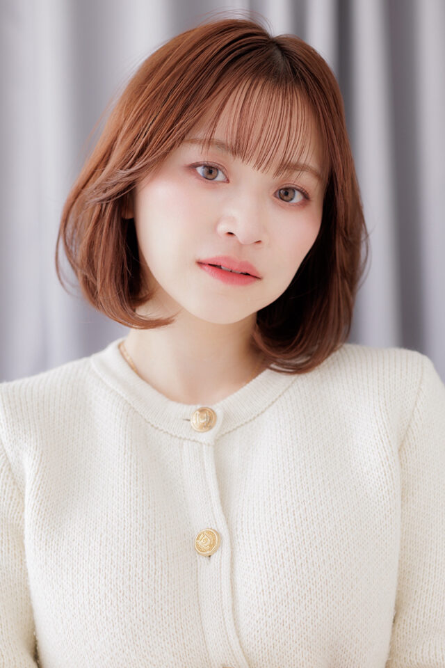 小顔カット。やりすぎない自然なエアリーな質感が、どこか余裕のある女性らしい可愛らしさを表現。ON.OFFどちらもいけて、カジュアルな中にもキチッと感のある万能ヘアをぜひ!
