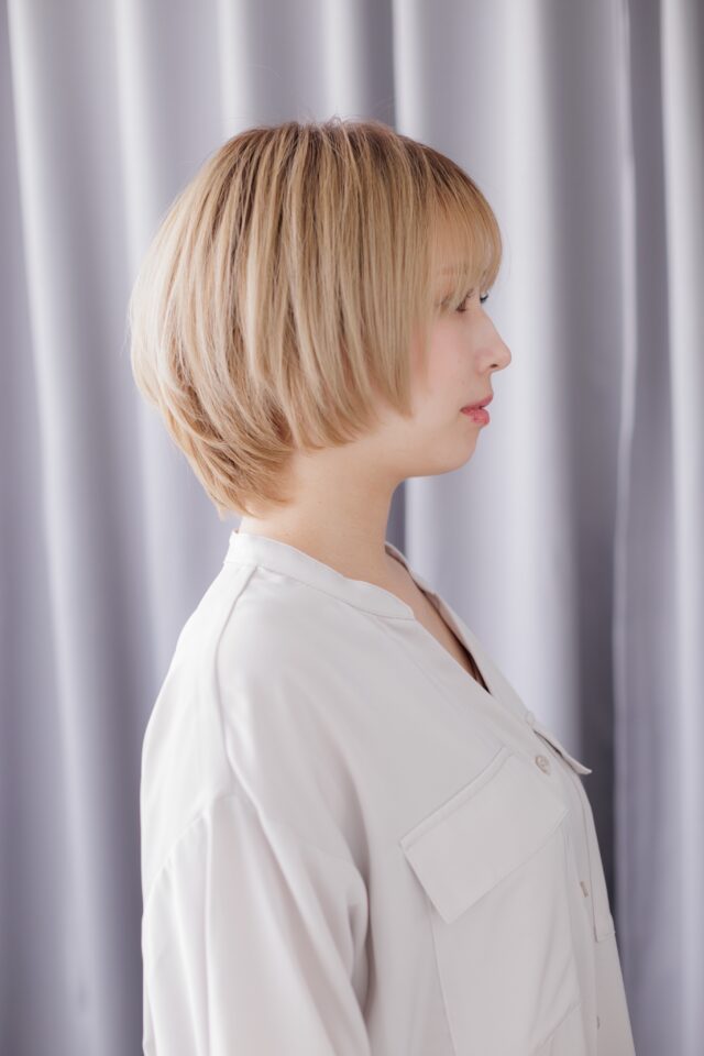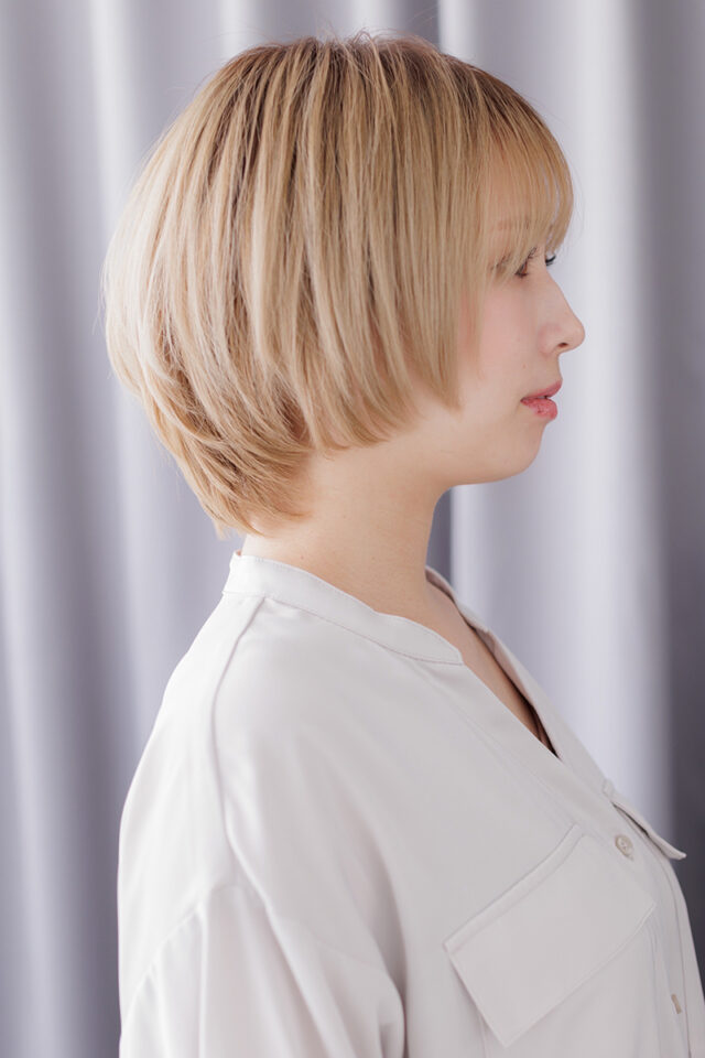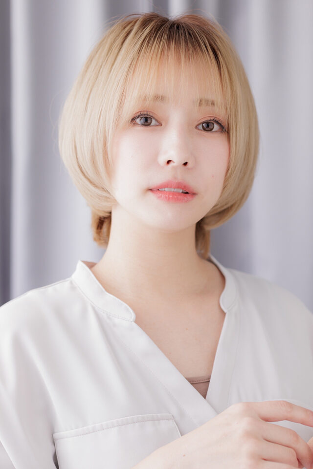 小顔カット。やりすぎない自然なエアリーな質感が、どこか余裕のある女性らしい可愛らしさを表現。ON.OFFどちらもいけて、カジュアルな中にもキチッと感のある万能ヘアをぜひ!