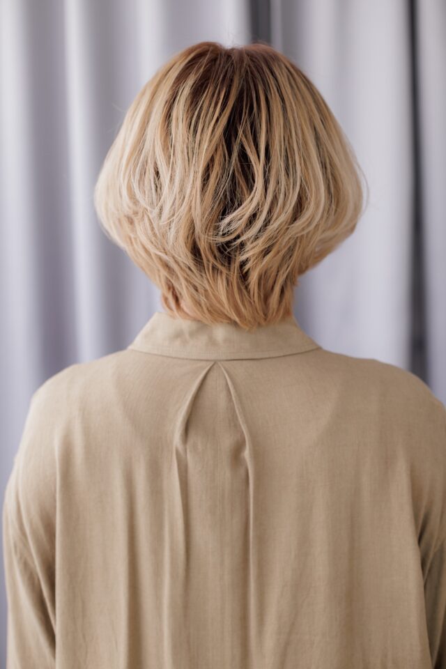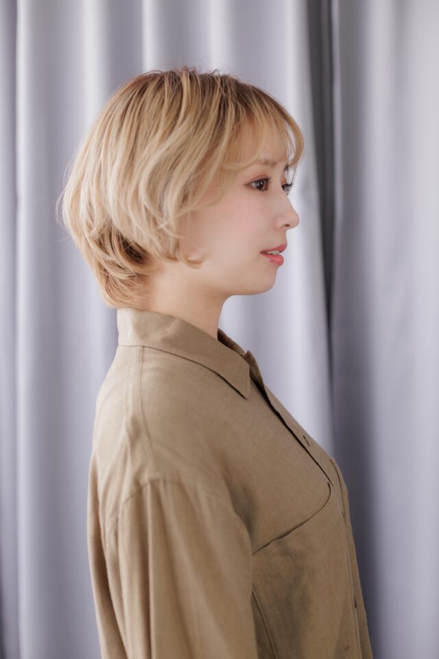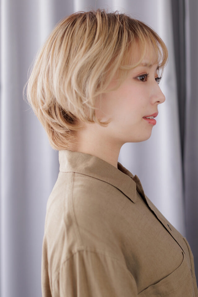 小顔カット。やりすぎない自然なエアリーな質感が、どこか余裕のある女性らしい可愛らしさを表現。ON.OFFどちらもいけて、カジュアルな中にもキチッと感のある万能ヘアをぜひ!