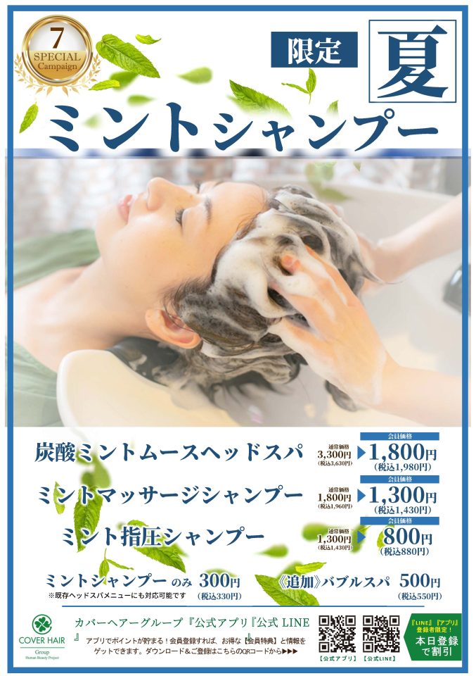 夏こそスパメニューがオススメです。ミントスパもございます。
