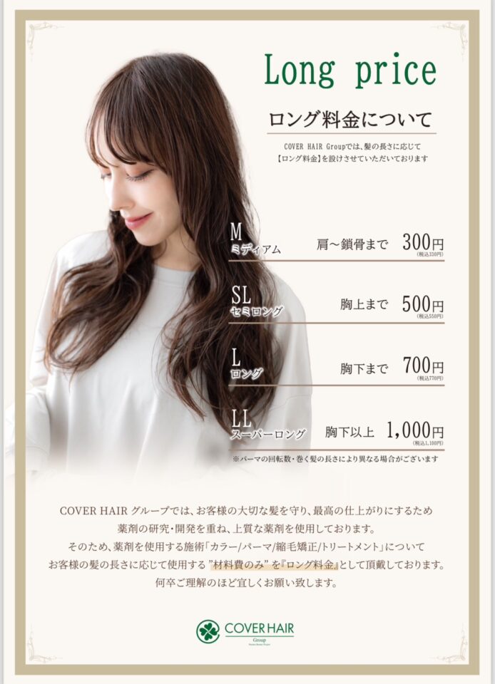 となっており、薬剤を使用する施術から上記のロング料金を皆様から頂戴しております。
