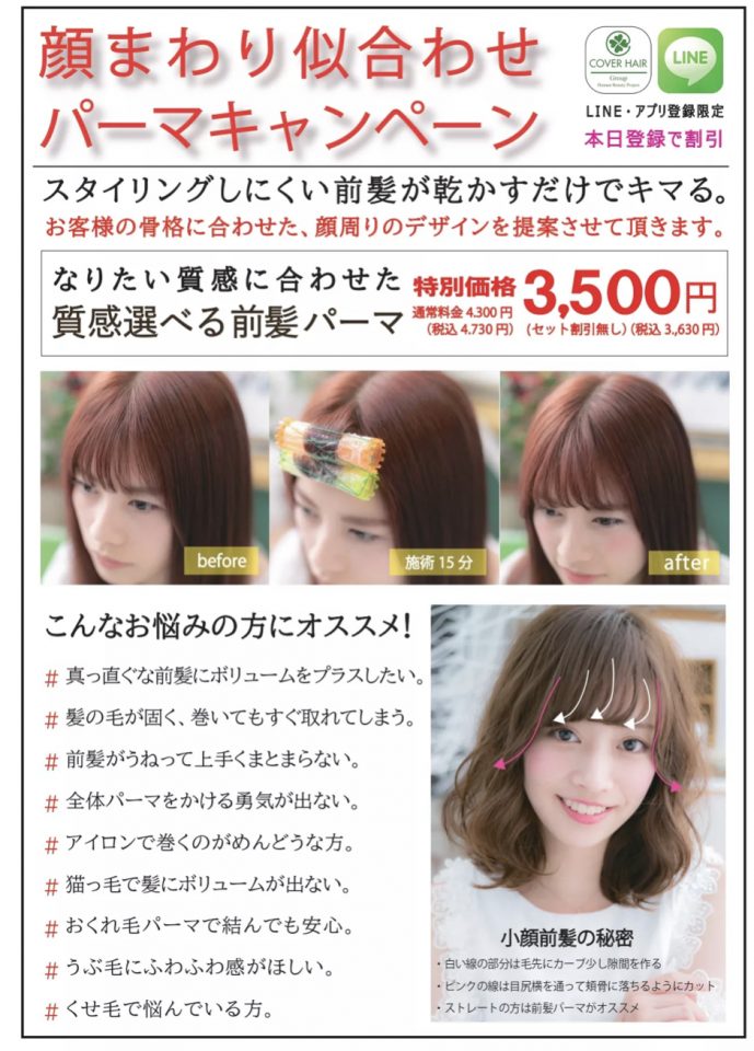 前髪パーマでお悩みを解決し、プチイメージチェンジをしませんか?