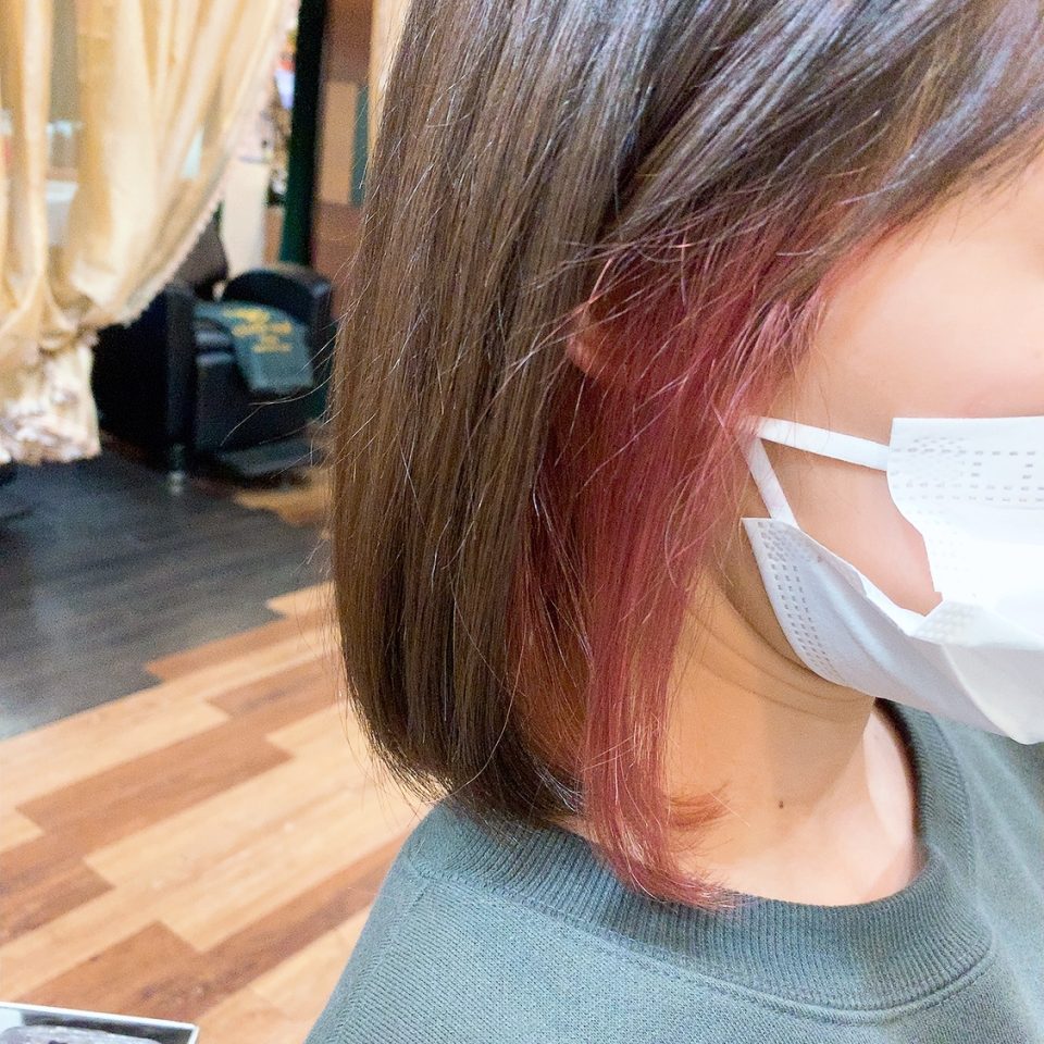 こちらのお客様はボブスタイルに、耳周りのインナーカラーが入っています!