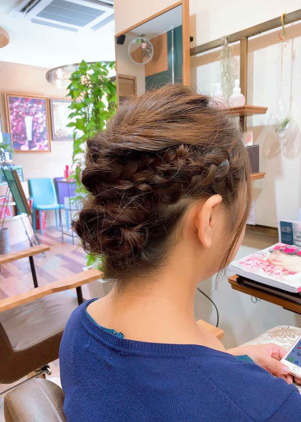 長さも肩下まであったので、編み込みも混ぜながら襟足はお団子にしてまとめました(^^)