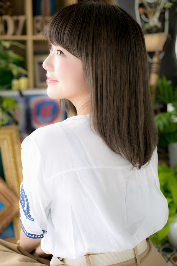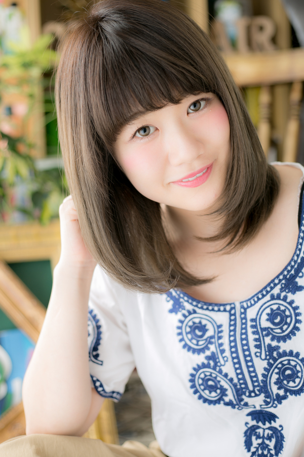 ペタっと平面的になりがちなナチュラルボブは、ガーリーな厚めバングとふわっとした空気感を加えて、ほんわかAラインを表現。ボブからの伸ばしかけの方にもオススメ。王道の好感ストレートミディでとびきり可愛く♪