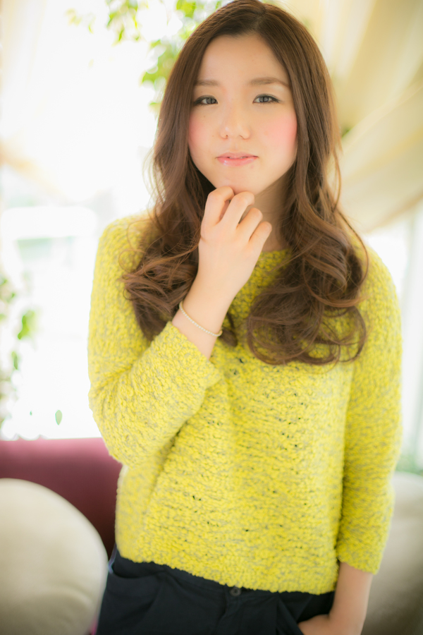 耳あたりから、ゆるくふんわりウェーブがかかったナチュラルスタイル。服装を選ばず、楽しめます。耳あたりから空気感を出す事で春らしい柔かさを表現。