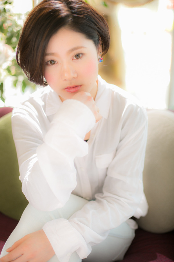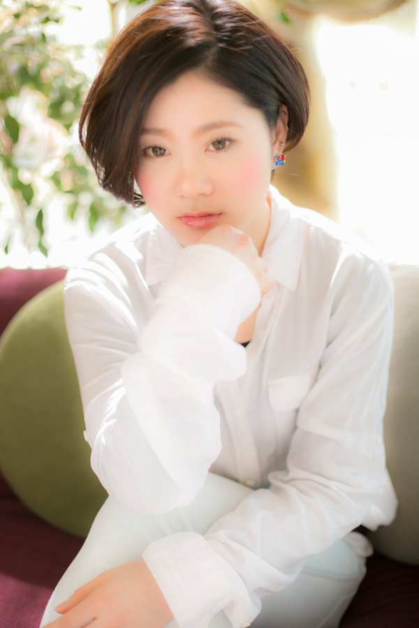 毛先に柔かく動きを付けた前下がりショートボブ。ハイライトでメリハリと動きを表現。少し耳にかけてスッキリした大人っぽさとアシメ感を演出。