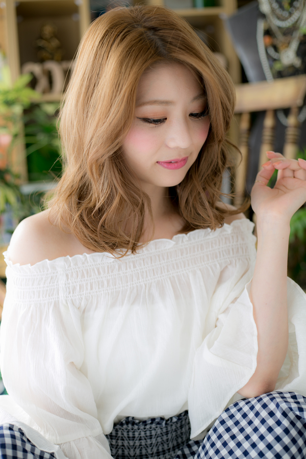 まろやかウェーブでラフな色っぽさを、攻めのハイトーンカラーで華やかなグラマラス感を演出。ほのかなくびれカールで程良い大人のセクシーさを残して。大人ボブからの伸ばしかけの方にもオススメ。耳かけもフェミニン♪