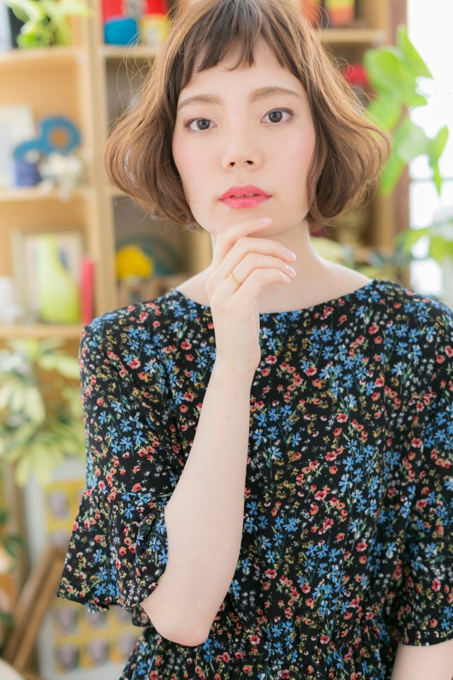 斜めバングや厚めバングで目力強調したり、耳かけも大人かわいい。黒髪でモード風に決めても大人クール。前下がりで輪郭カバーして小顔にメイクしているので、ボブ初挑戦の方にも◎ふわミディやひし形シルエットも旬顔。ヒアルロン酸カラーは白髪にも対応可。