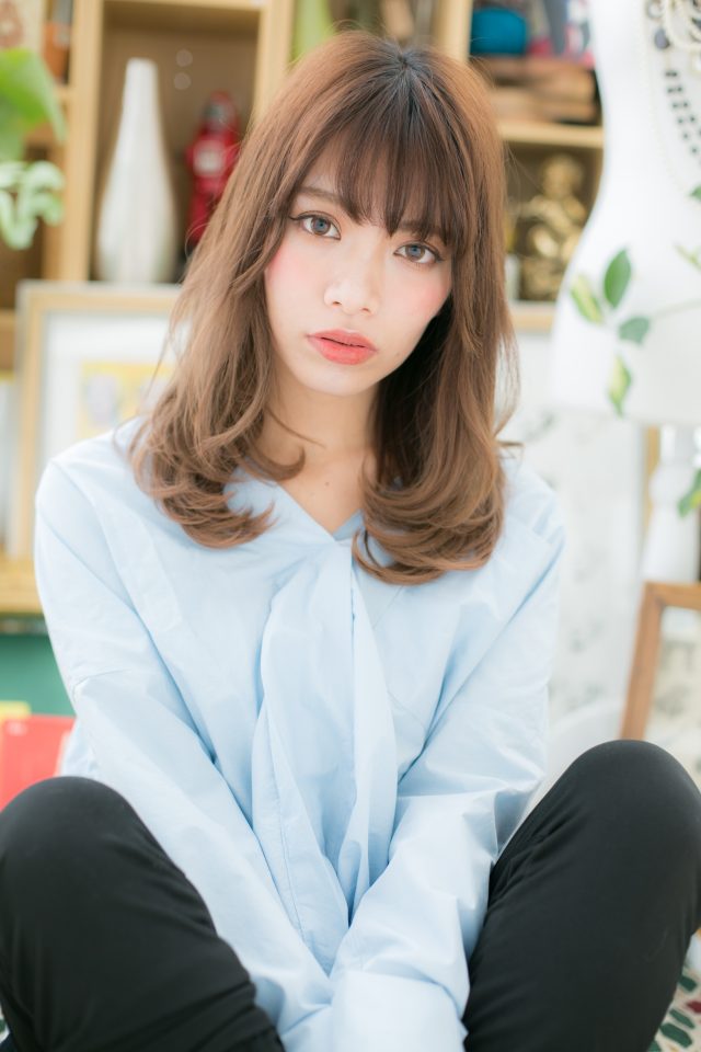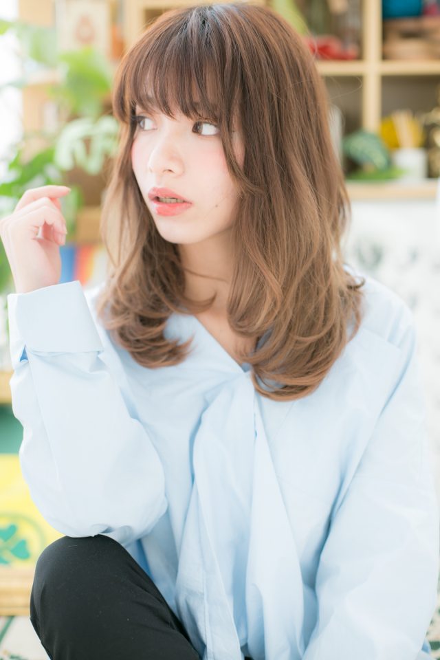 斜めバングとグラマラスカールでお人形さんみたいなとびきりガーリーな愛されセミディのヘアスタイル。前下がりで小顔にして美人度UP!厚めバングやジグザグバングも個性的で大人女子のファッション度UP。くせ毛風ふわミディや耳かけでヘアアレンジ。髪の色はグラデーションやベージュ、ピンク系のカラーもおすすめ!30代・40代に◎