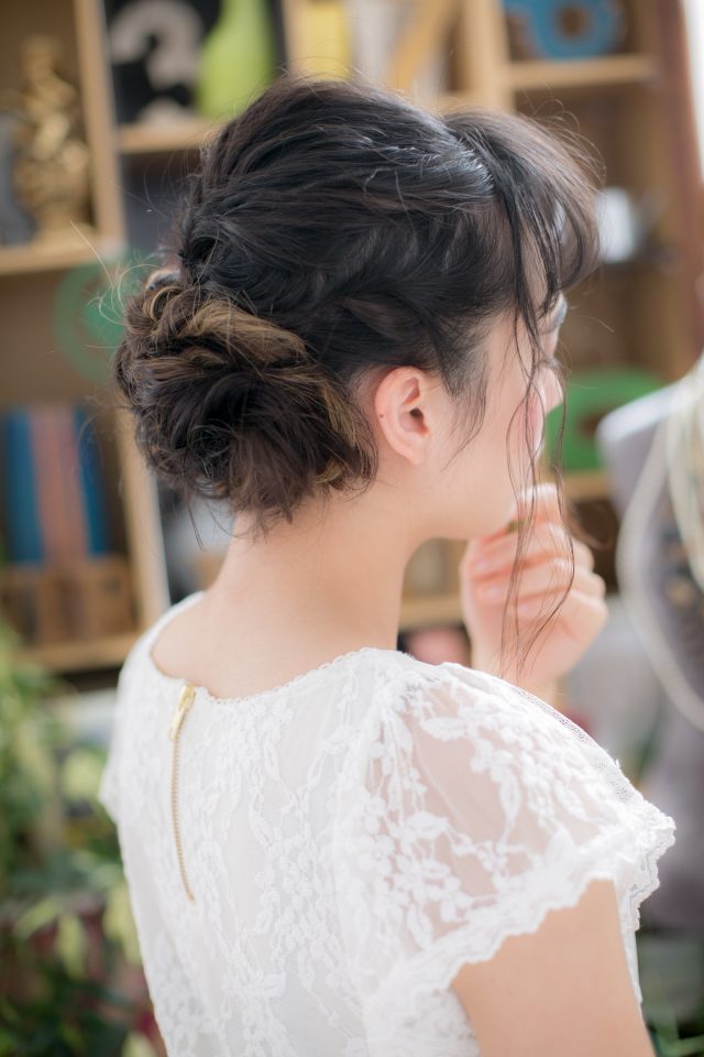 ねじり編み込みとお団子で清楚に仕上げたまとめ髪スタイル。低い位置でまとめることで、落ち着いた印象の”きちんと感”が出るので、お呼ばれにもピッタリ。おくれ毛でこなれ感を出すだけでなく、輪郭をさりげなくカバーして小顔対策もOK。普段使いしても◎