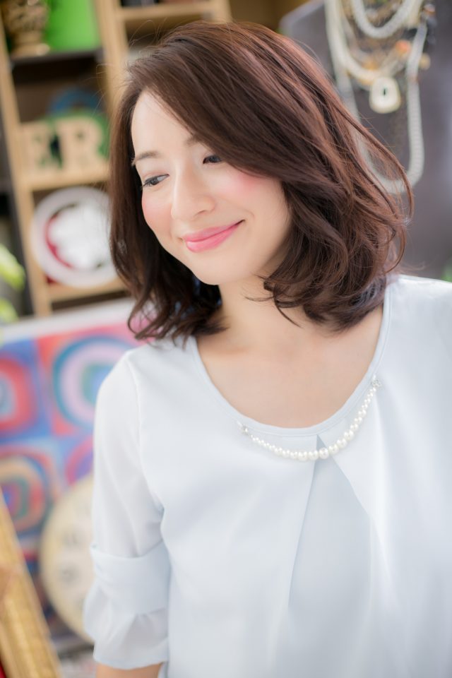 結婚式や二次会にはボリュームカールやリッチウェーブでグラマラスに女度UPしてクールビューティーに♪ナチュラルボブ,前下がりボブ,大人ボブやフェミニンボブ,ふわミディから伸ばしかけにオススメ/ヒアルロン酸カラーは白髪にも対応可/20代/30代/40代