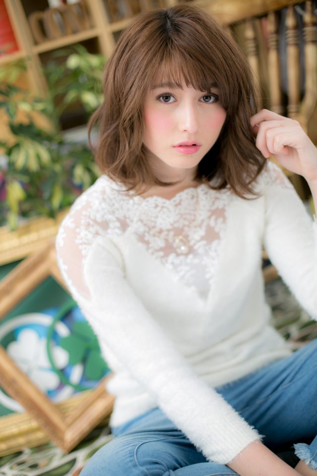 レースのようなやわふわカールがとびきりガーリーな愛されミディ。フリンジバングと合わせて旬顔にアップデート。前髪が伸びてきたら、センターパートでクールビューティにしたり、耳かけしたタンバルモリもトレンド!