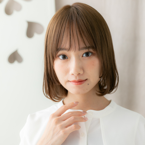 丸みあるコンパクトフォルムで、フェミニン&小頭に仕上げた大人ショート。トップをふんわり仕上げることでスタイルアップ効果を狙います。スッキリショートでも、空気感&温感カラーで女性らしい雰囲気に仕上がります♪