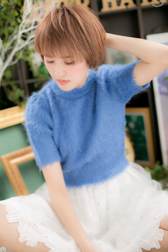 似合わせカットで毛先を軽く調節したカジュアル小顔ショート。前下がりな前髪やアシンメトリー、厚めバング、斜めバングにしたり、うぶバングで眉を出しても大人かわいい☆カラーはグレージュショートがおすすめ♪