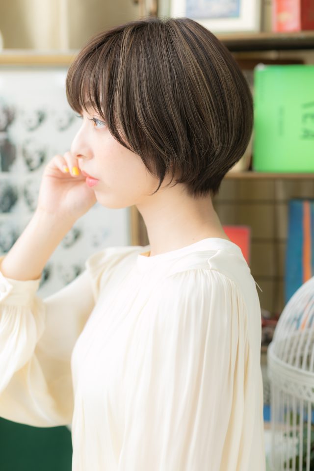 インナーカラー/切りっぱなしボブ/シースルーバング/大人ハイライト/韓国風/マッシュボブ/ウルフ/ナチュラルマッシュショート/ショートマッシュ/イヤリングカラー/丸みショート/くびれショート/ナチュラル/20代/30代/40代