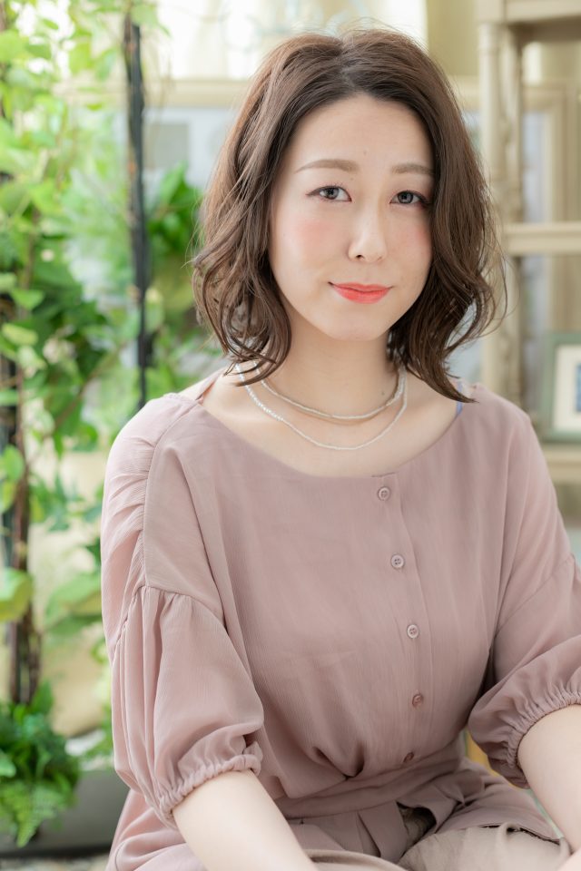ナチュラルボブやフェミニンボブ、大人ボブや前下がりボブからのイメチェンに。斜めバングや厚めバング、前下がりで小顔。くせ毛風ゆるふわミディや耳かけ外ハネウルフも大人かわいい。(メイク担当:川口店 伊与田)