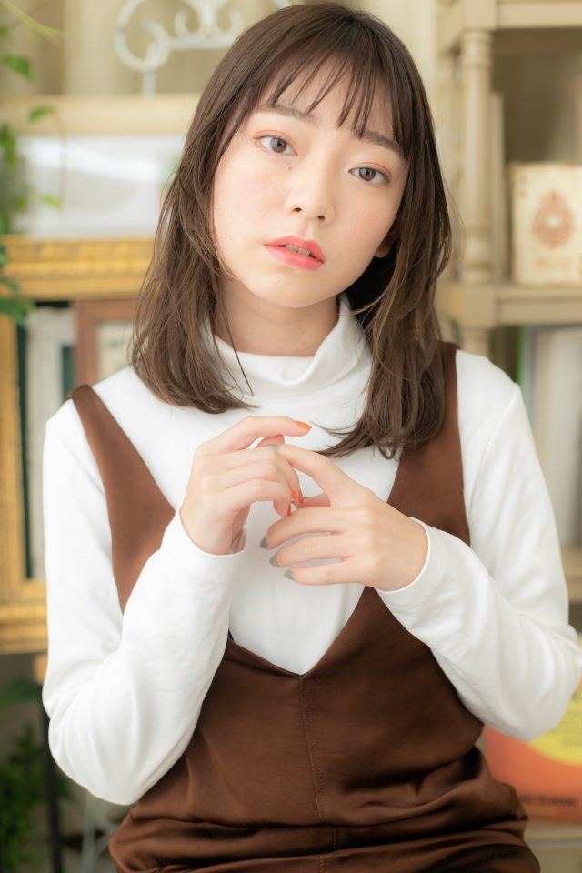 ナチュラルボブやフェミニンボブ、大人ボブや前下がりボブ、ミニボブからの伸ばしかけに。くせ毛風ゆるふわミディや耳かけ前下がりウルフも小顔。斜めバングや厚めバングも大人かわいい。(メイク担当:北浦和店棟方)