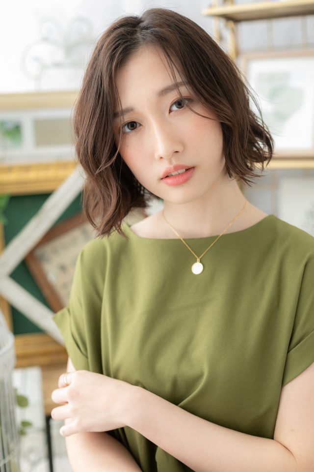 ナチュラルボブフェミニンボブ、大人ボブ前下がりボブ、ミニボブ切りっぱなしボブも人気。斜めバング厚めバングが大人かわいい。耳かけ前下がり、くせ毛風ゆるふわミディ、ウェットヘアで小顔。(メイク担当:川口店岩淵)