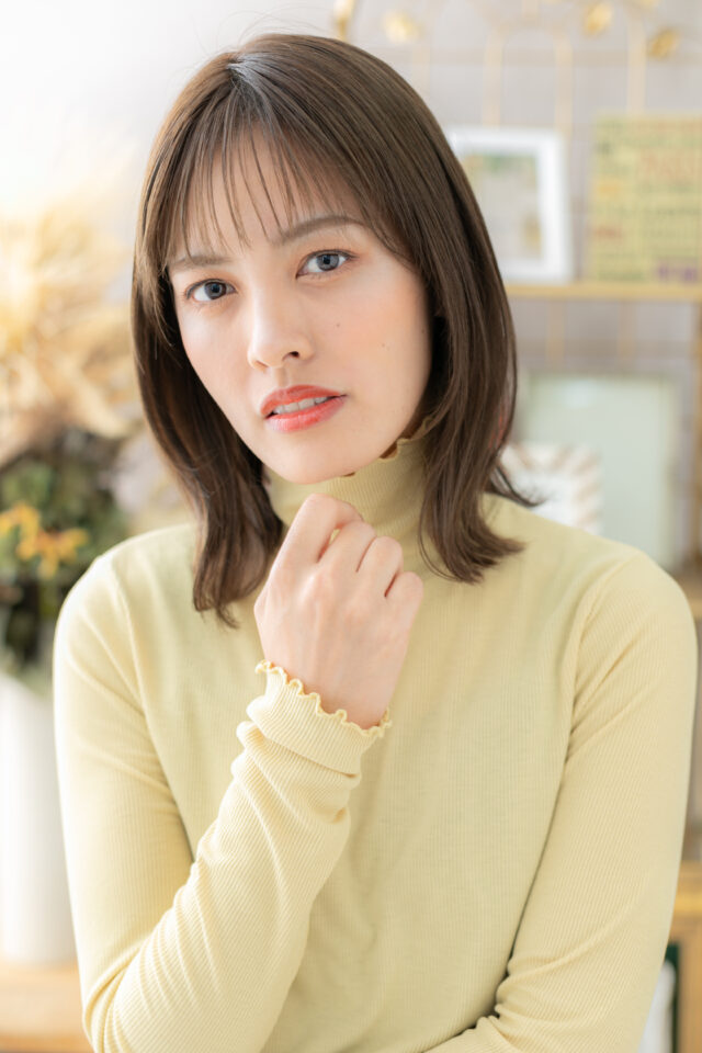 斜めバング厚めバング、かきあげ前髪で小顔。くせ毛風ゆるふわミディや耳かけ、前下がりウルフやエアリーミディも大人かわいい。マッシュボブナチュラルボブ、大人ボブ前下がりボブも人気。(メイク担当:川口店伊与田)
