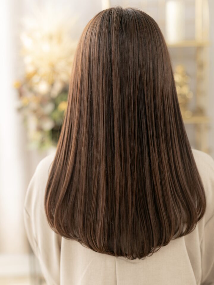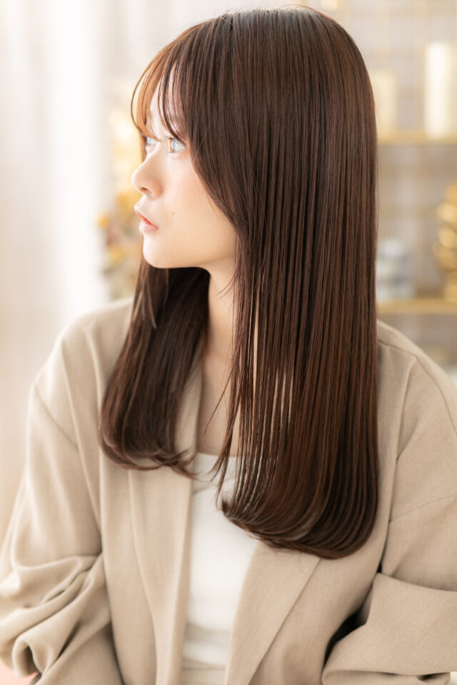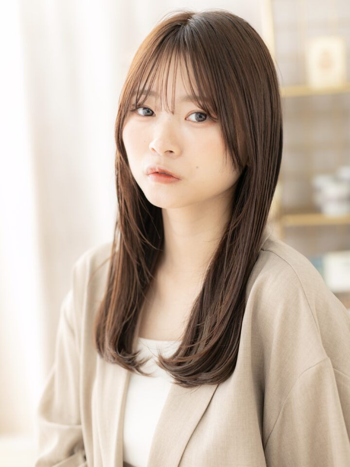 インナーカラー/バレイヤージュ/ハイトーンカラー/ハイライトカラー/韓国風/外国人風/くせ毛風/ウェットヘア/イヤリングカラー/アッシュオリーブ/くすみカラー/ニュアンスパーマ/黒髪/エアリーミディ/ナチュラル/20代/30代/40代