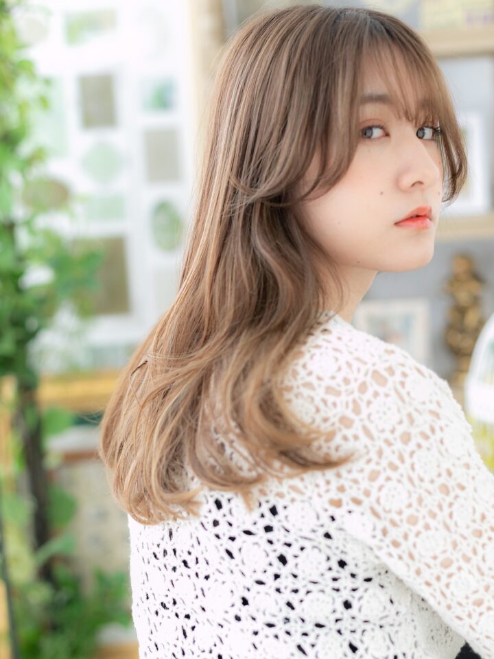 斜めバング厚めバング、シースルーバングかきあげ前髪が大人かわいい。ナチュラルボブフェミニンボブ、大人ボブ前下がりボブで小顔。くせ毛風ゆるふわミディや耳かけ前下がりウルフも◎(メイク担当:北浦和店 成田)