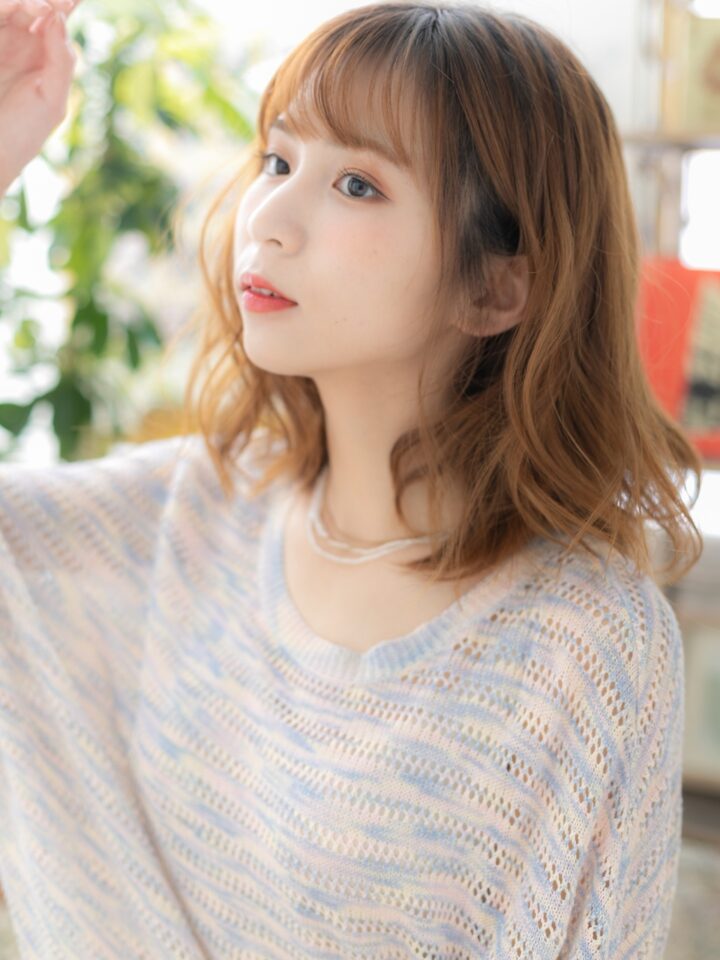 大人かわいいくせ毛風ふわミディは、ナチュラルボブやフェミニンボブ、大人ボブや前下がりボブからの伸ばしかけに◎斜めバングや厚めバング、前下がりや耳かけで小顔。大人ハイライトが旬。(メイク担当:北浦和店 棟方)
