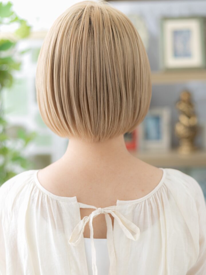 外国人風大人かわいい前下がり金髪ボブ20代30代