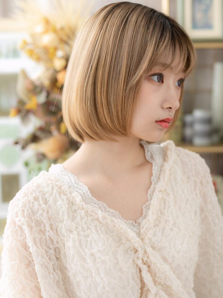 大人かわいいハイトーンショートボブ20代30代