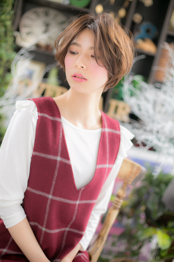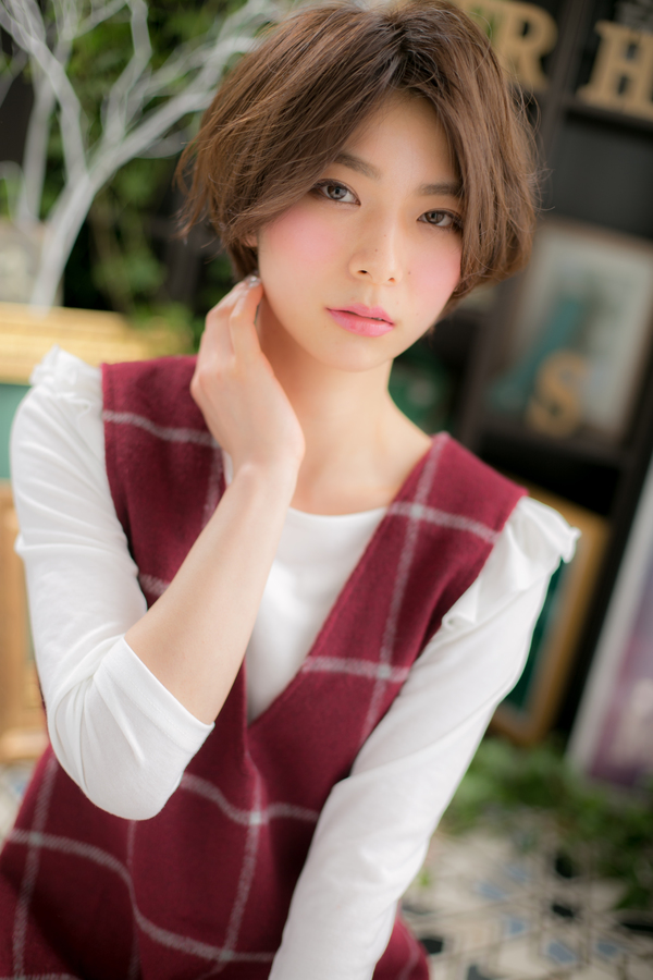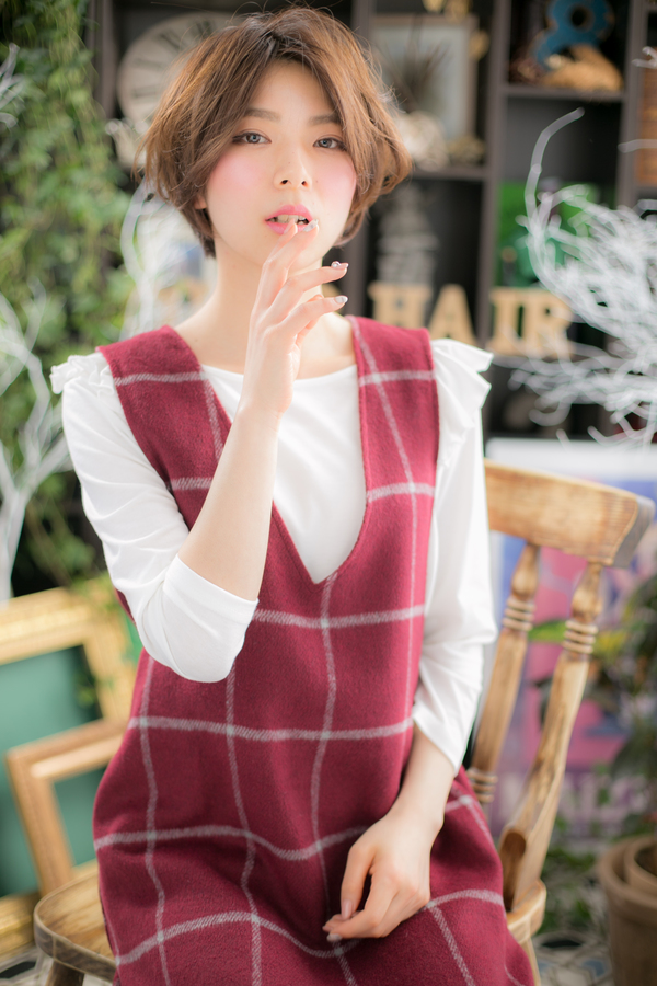 空気を含んだエアリーボブスタイル。肌を綺麗に見せてくれるヌーディーカラーと、さりげなく頬にかかる前髪で艶っぽく大人っぽい表情に。