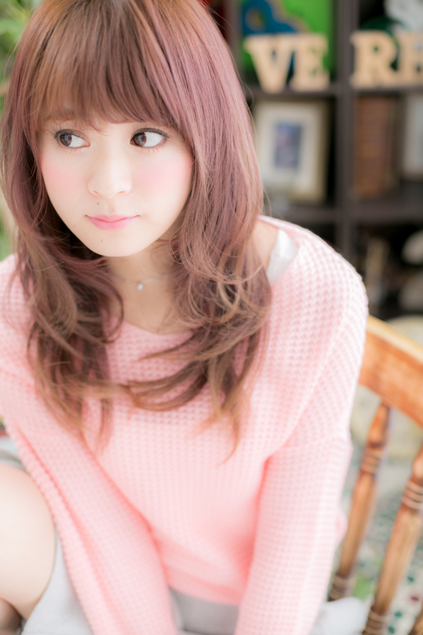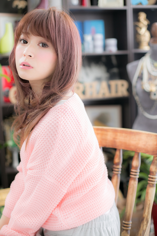顎下ラインから大きいカールが揺れるようなレイヤーが入ってるので、毛先メインのパーマも華やかにも見えます☆ピンクベージュ系のカラーで愛らしさもプラスのモテスタイルです。