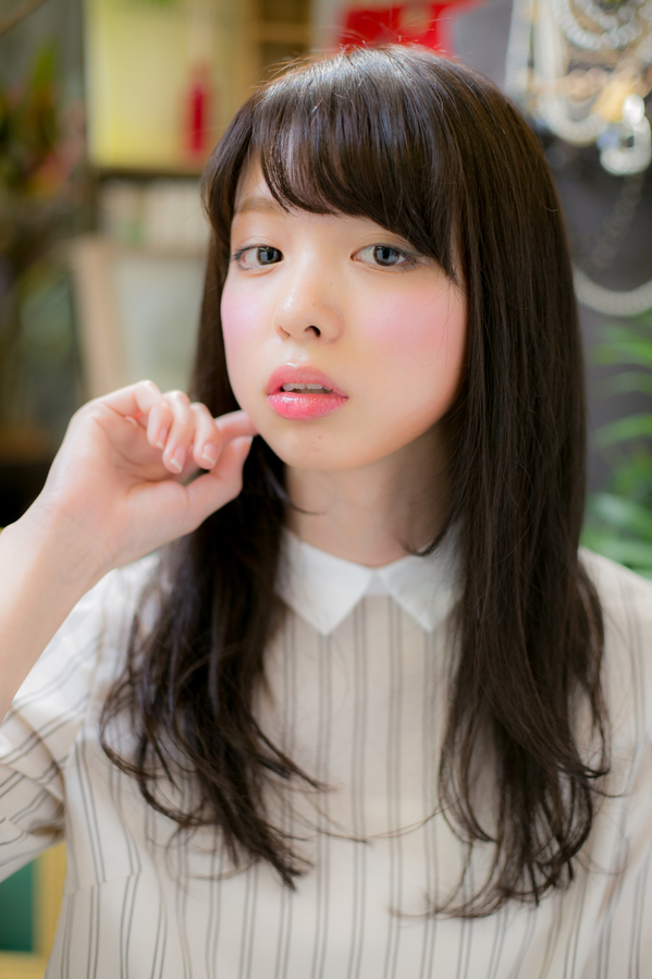 クセを生かして、毛先の動きをプラスに。サイドのレイヤーが動きのあるスタイルに見せます。目を強調させる目の上ギリギリバングがあなたの印象度をUPさせます。