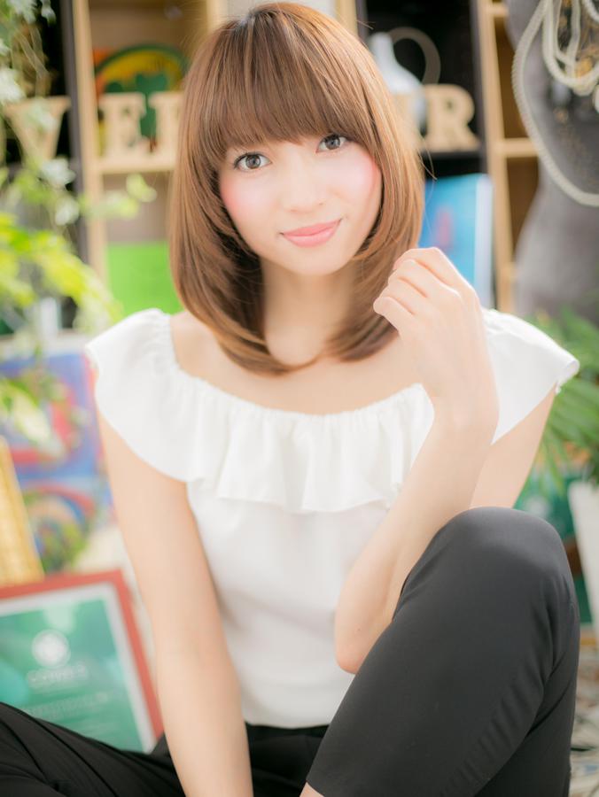 ワンカールストレートのきらめくツヤ感で上品さもキープ♪サイドにはいってるレイヤーで軽さと動きのある表情をプラスしてくれます。