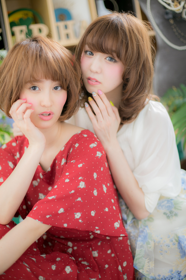 左:グラデーションカラーや3Dからーでナチュラルなボブスタイルに動きを出します。 右:柔らか質感のウェーブスタイルに明るいアッシュ系カラーで外国人風な印象に。