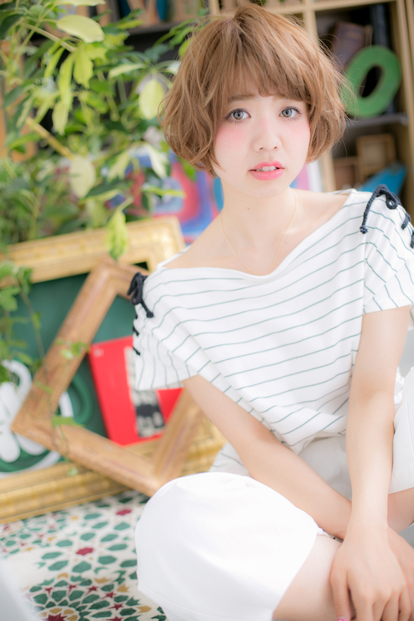 外国の子どものようなくしゃっとした柔らかい印象のウェーブボブに明るめのカラーをオン。ハイライトで動きを出すのがオススメです☆毎日の気分もハッピーになれそう♪