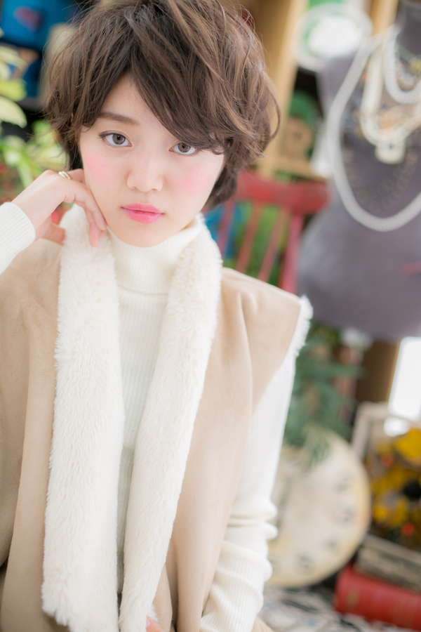 ボーイッシュになりがちなマッシュショートも、トップからのふんわりとしたエアリーカールでやわらかで女性らしい印象に。ストレートショートに飽きた方にも☆