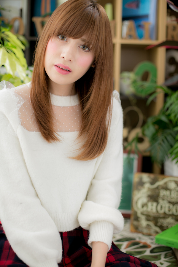 しっとりフォルムのストレートロングにハイトーンカラーでアクセントをつけました。目のラインぎりぎりのバングが目元の印象をUPさせます。