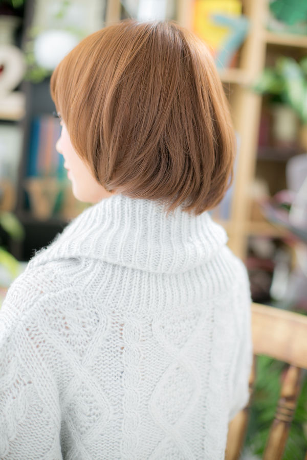 丸いシルエットがかわいいナチュラルボブスタイル。明るめのベージュカラーでカジュアルさもプラスしたエアリーな印象のボブスタイルです。