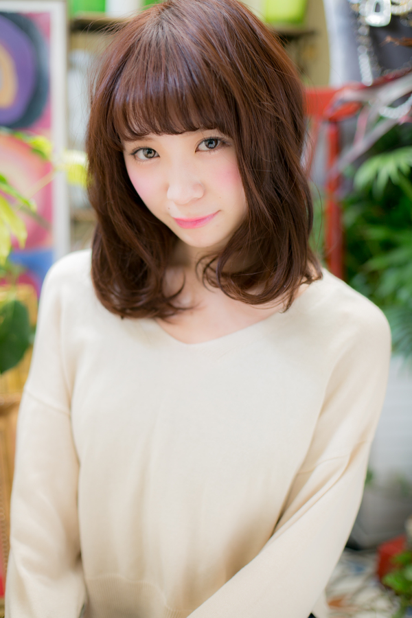 前髪のワンカールとナチュラルなアンニュイカールで自然体の優しい雰囲気に。毛先のハネ感でトレンド感もプラス。ナチュラルなカジュアルさと清楚な雰囲気を合わせ持たせます。